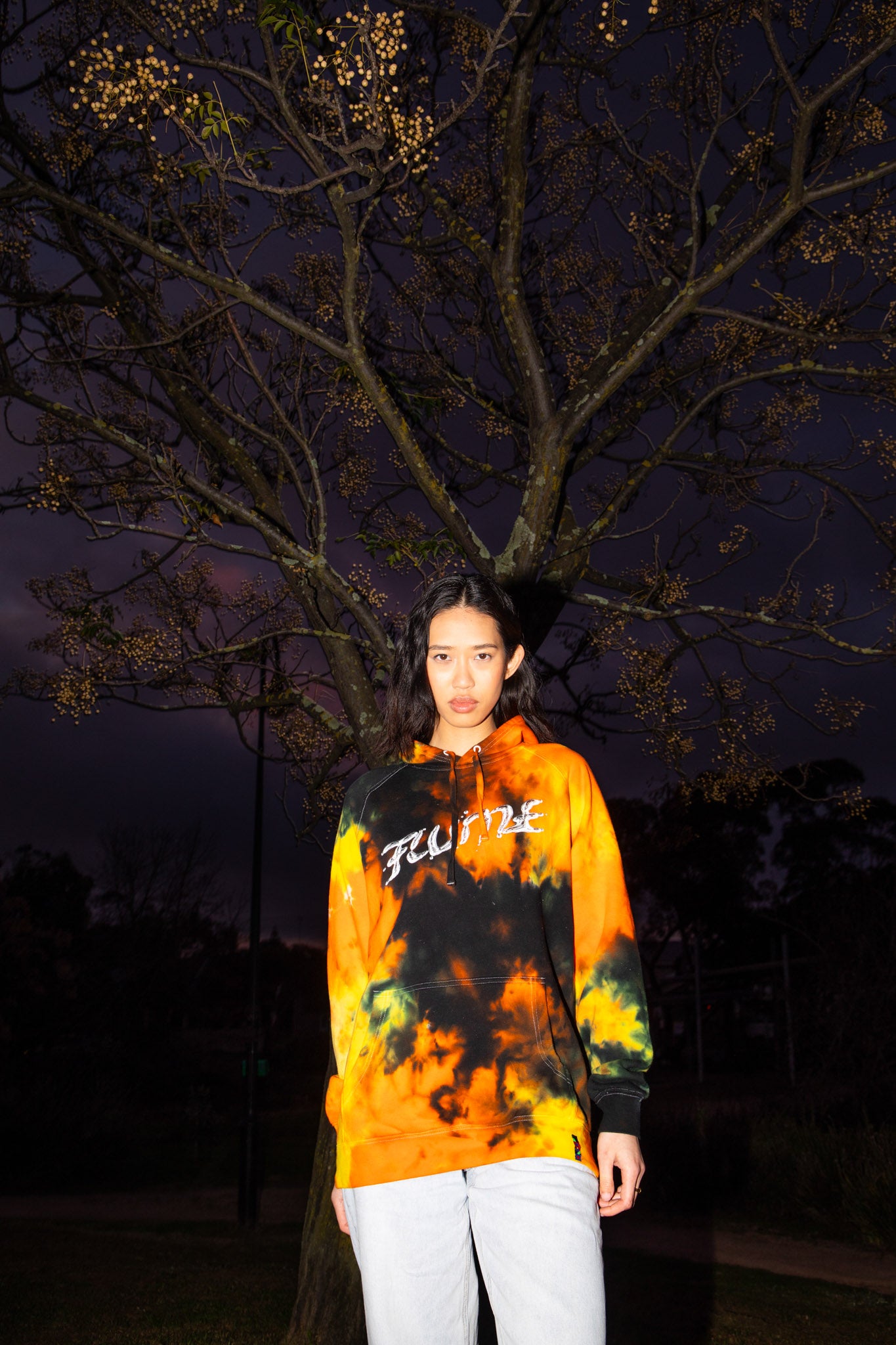 Flume 'Logo' Orange Splash Tie Dye Hood